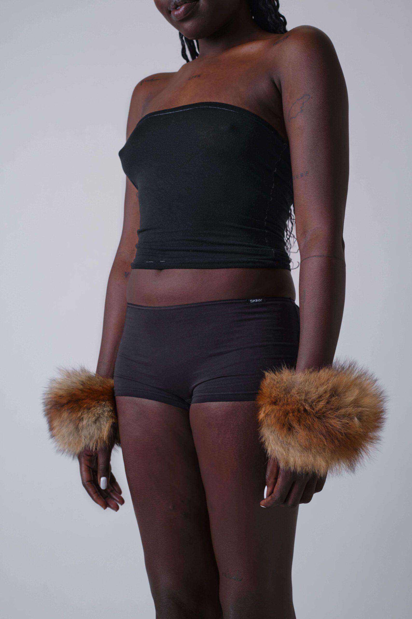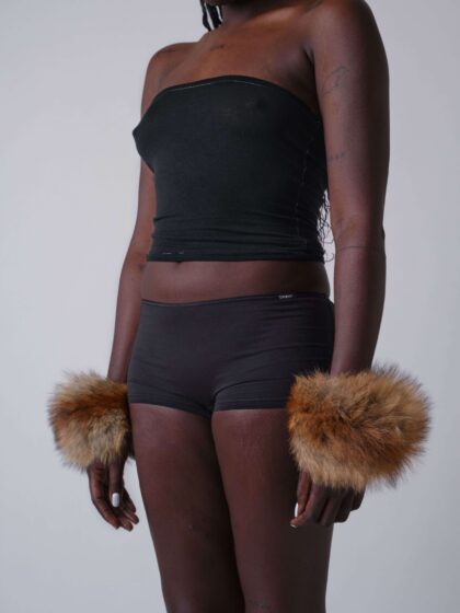 The “Arm Cuffs” are made from responsibly sourced fox fur, harvested through strictly regulated Swiss hunts designed to support ecological balance and biodiversity. These luxurious cuffs provide both warmth and elegance, serving as a functional accessory for colder months.