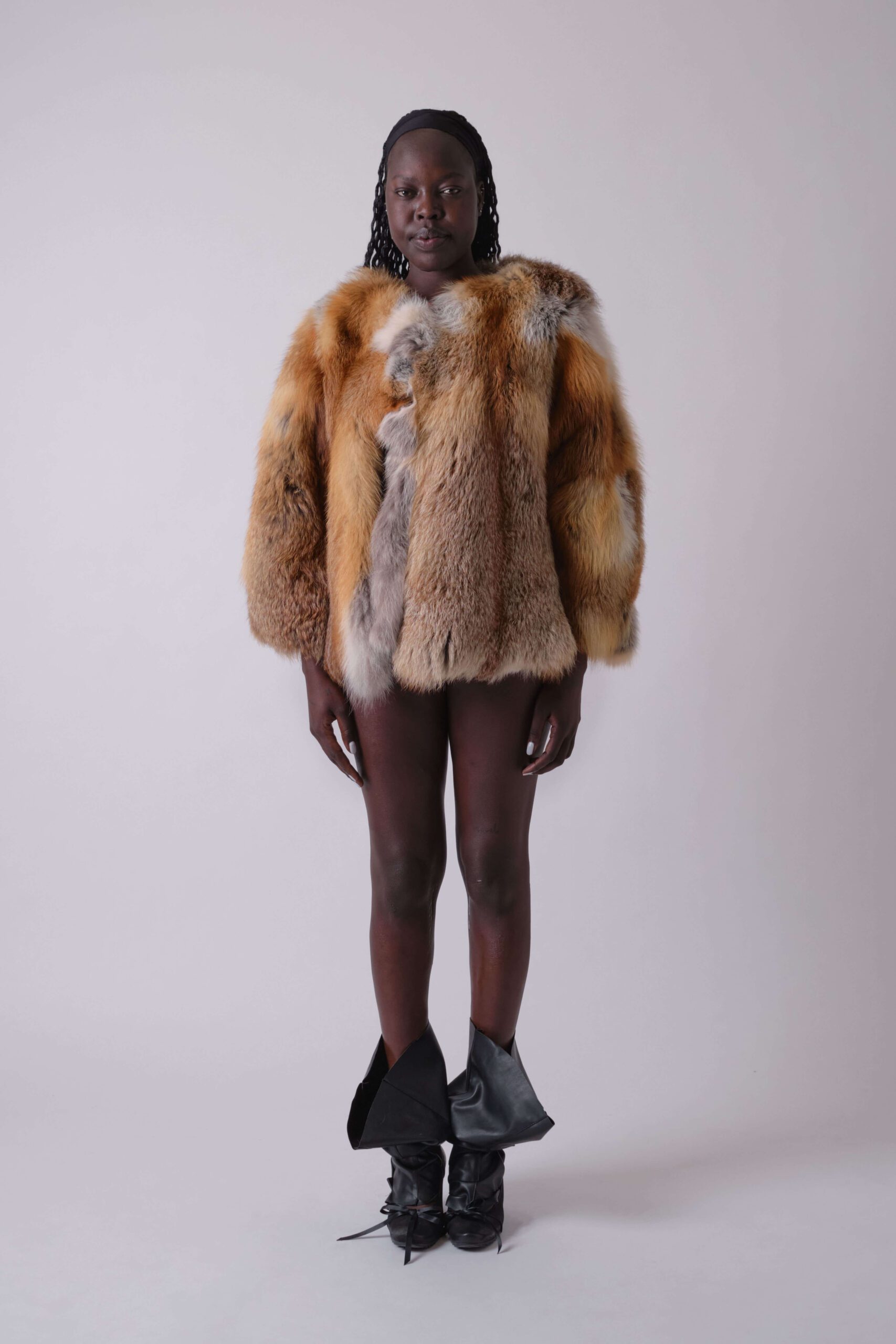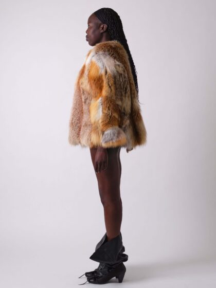The “Asymmetrical Coat” is crafted from responsibly sourced fox fur, harvested through strictly regulated Swiss hunts designed to support ecological balance and biodiversity. With a bold asymmetrical design, this coat offers both natural warmth and a refined silhouette. It is lined with pure silk for ultimate comfort and elegance.